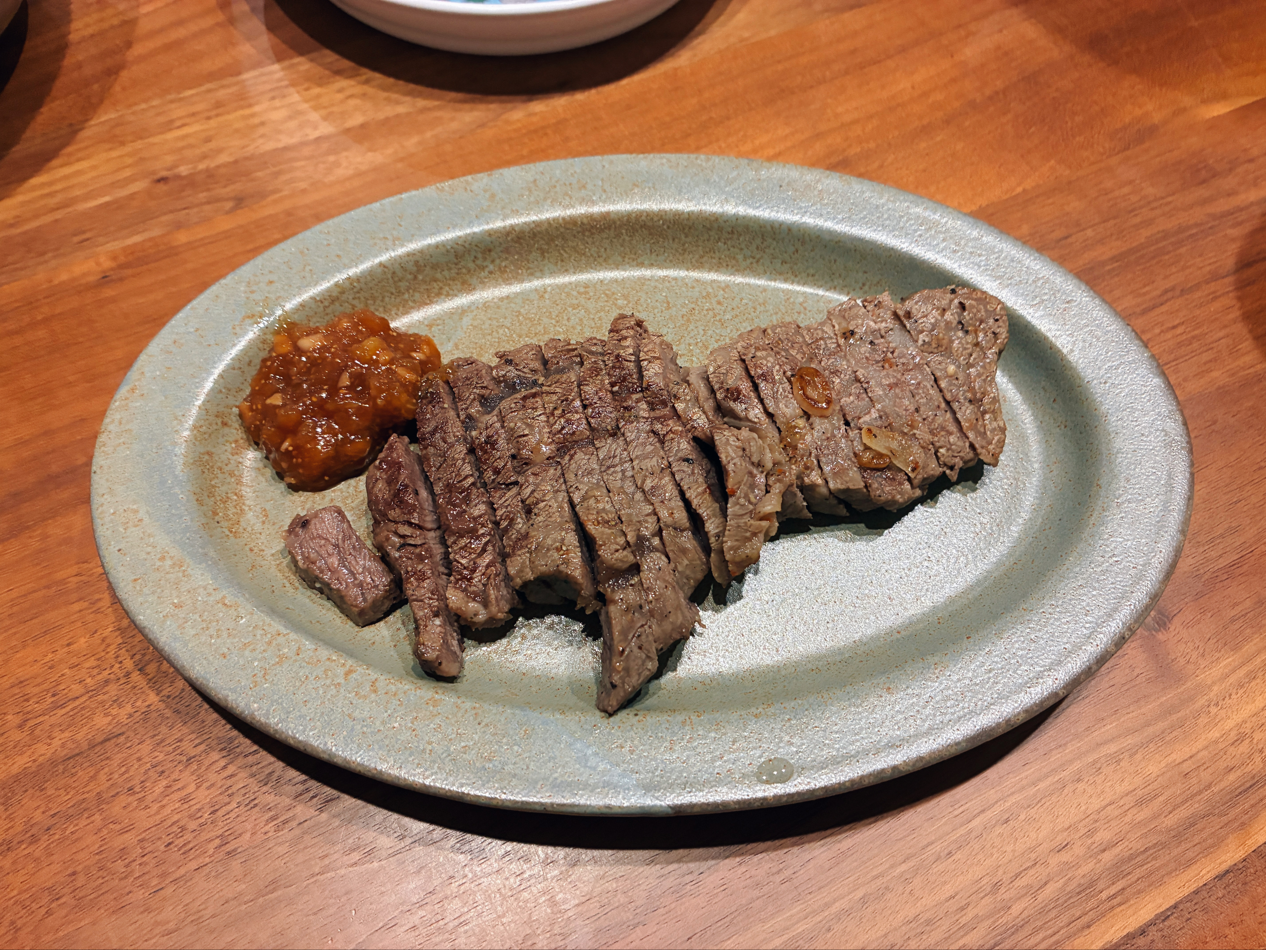 前菜のサラダをいただいている間に本日のメイン!焼き上がったステーキがご登場です。